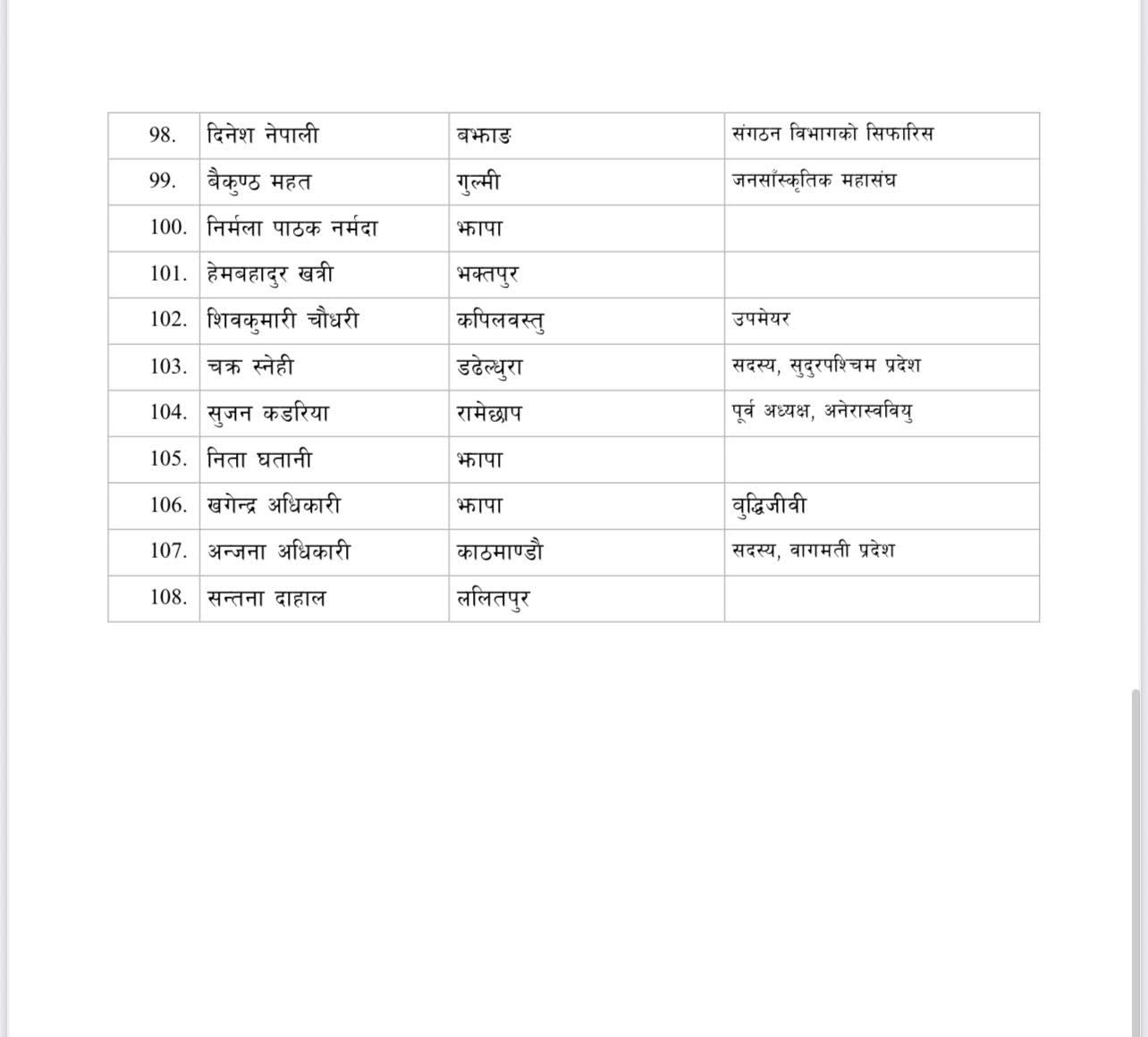 काठमाण्डौ जिल्लाबाट नेकपा एमालेले समानुपातिकमा कसलाई गर्यो सिफारिस ? ( सुची सहित )